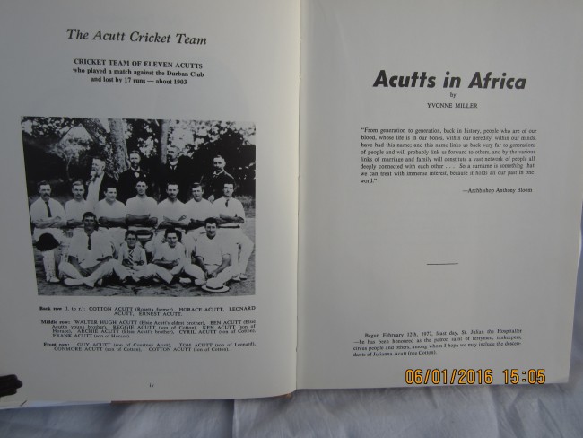 14+206 pages, list of sources, black & white illustrations: the lives & adventures of the descendants of the 7 brothers and sisters of the Acutt family who came to Natal between 1851 and 1870; hardback very good in very good dust wrapper (sl chipped but protected), LIMITED EDITION (234/500)