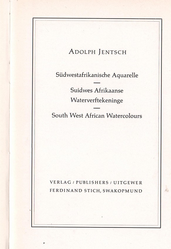 Jentsch moved to Namibia in 1938 to escape the approaching war and lived there until his death. He travelled extensively in Namibia and eventually settled down near Dordabis, about 60 km from the capital Windhoek. Jentsch painted landscapes and worked in watercolour and oil. He was interested in Oriental philosophy and was influenced by Chinese Art. https://en.wikipedia.org/wiki/Adolph_Jentsch