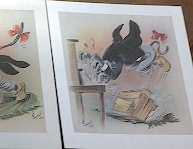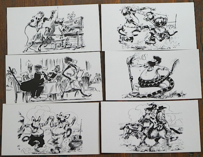 4 colour prints (25x32.5cm) on quality art paper. Comes in a folder featuring an Adoons print on the front cover plus a Collection of 6 black & white Adoons post cards. The folder has some creases, the color prints and cards are in Fine condition.