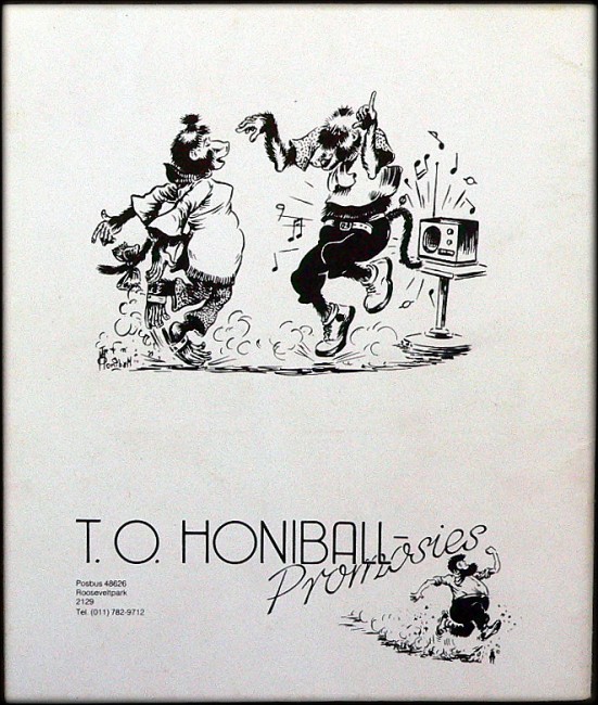 Thomas Ochse Honiball was born on 7 December 1905 in Cradock. He attended the Paul Roos Gimnasium in Stellenbosch and did drawings for the school magazine. He studied architecture at the University of Cape Town (until 1926). In 1927 he continued to study commercial art in Chicago, where he was introduced to American cartoons. On his return to Cape Town in 1930 he worked in advertising and later as freelance caricaturist and cartoonist. From 1936 he worked for Nasionale Pers newspapers and in 1941 took over from DC Boonzaier as political caricaturist.