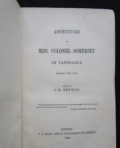 'The interesting narrative of Mrs. Colonel Somerset's adventures in Caffraria is compiled from letters and notes placed in the keeping of a regimental schoolmaster.