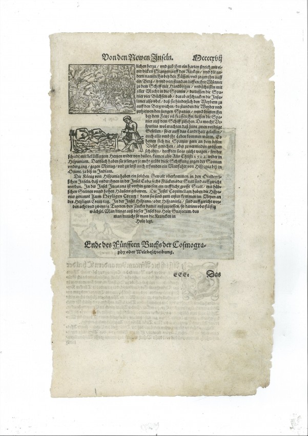 This is a fascinating, very old map, in excellent condition and with a rather gruesome illustration on the verso, from Münster's Cosmography, once the most popular book in the world.