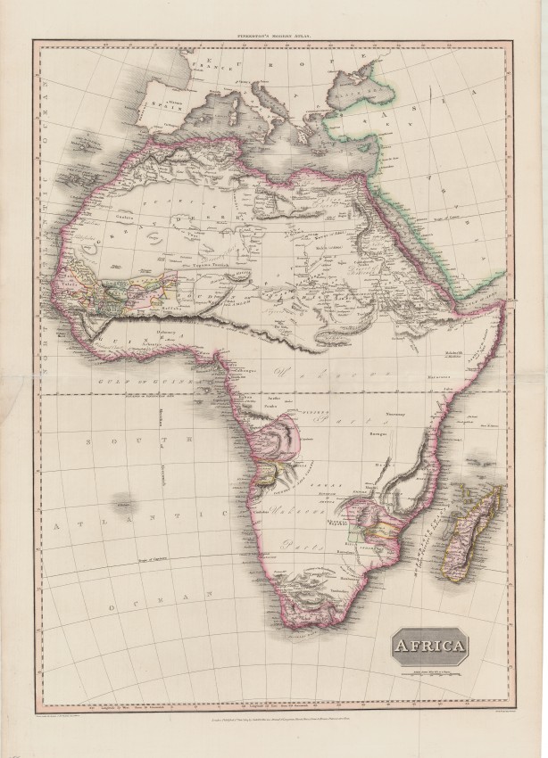Pinkerton’s map of Africa, is arguably the best detailed map of Africa from the period - and superior to the maps of Cary and Thomson. The map is from the first edition of Pinkerton's Modern Atlas, published in London.