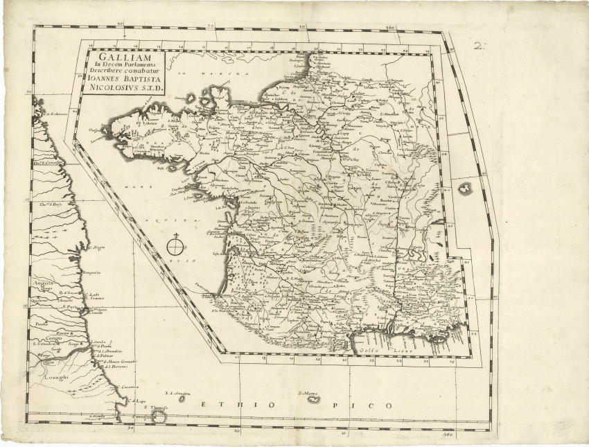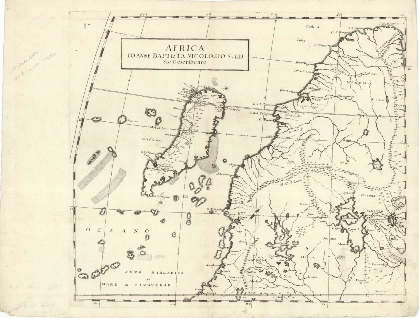 Giobattista Nicolosi, a priest from Sicily, was a cartographer for the Pope Gregory XV’s Sacred Congregation for the Propagation of the Faith, established by the pope to promote missionary work. This map is one of a set of four continents and a world map that he produced for the second volume ofDell' Hercolee studio geografico di Gio Battista Nicolosi...It was also published posthumously in its second state inHercules, Siculus sive stadium geographicum(Rome: J.B. Nicolosi,1670-71).