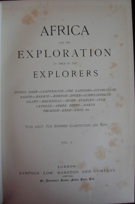 Explorers: Mungo Park, Clapperton, the Landers, Livingstone, Barth, Barkie, Burton, Speke, Schweinfurth, Grant, Nachtigal, Mohr, Stanley, Iven, Capello, Serpa Pinto, Baker, Thomson, Kerr, Emin, Etc.
