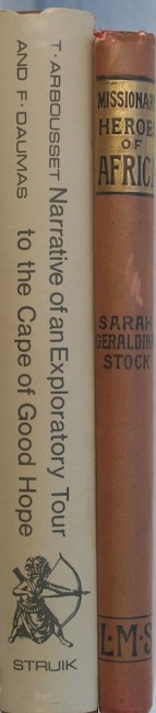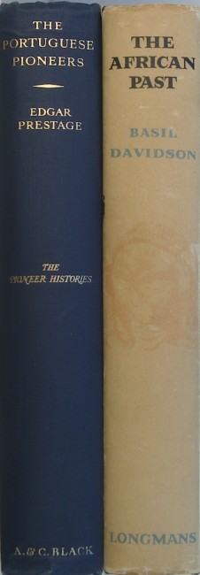 (1) Narrative of an Exploratory Tour. Arbousset (T.) & Daumas (F.); C Struik, Cape Town, 1968. To the North-East of the Colony of the Cape of Good Hope. Facsimile reprint, Africana Collectanea Series No. XXVII: 330 pages, frontispiece, folding map, 10 illustrations, brown vynide, light foxing to extremities, end papers yellowing, dust jacket shelf worn with small tears, else Very Good. (2) Missionary Heroes of Africa; Stock, Sarah Geraldina, London, London Missionary Society, 1897, 180x218mm, With 75 illustrations and a map, Hard back, decorated cloth, pp. viii + 204 + advertisements. Spine area a bit sun faded, light foxing on end papers, otherwise very good internally, covers and binding fair. Presentation plate on flep: 'Presented to James Riley, by the London Missionary Society, for collecting the sum of 6/6 for the New Year Offering of Ships, January, 1898 in Connection with Adelphi Chapel Sunday School'. (3) The Portuguese Pioneers, Edgar Prestage; A. & C. Black Ltd, 1933, First Edition, Hardcover, 15x22.5cm, pp. xiv + fold-out maps + 352. Blue cloth with gilt on front and spine, first and last two leafs sun-faded, internally very good, binding very good, inscription and stamp on flep, dj in poor condition. (4) The African Past, Chronicles from Antiquity to Modern Times; Davidson, David. Longmans, New York, 1964; First Edition. Hardcover, 8vo, pp. 392. A Good copy in a Good DJ.