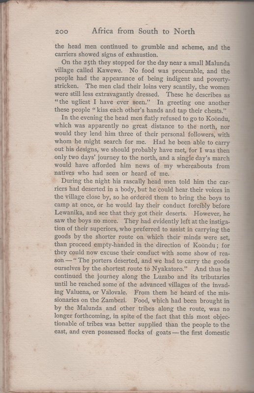 The author was in charge of the 1898 to 1900 expedition to Marotseland. Aided by grants from the Royal Geographic Society, the British South Africa Chartered Company, and British Military Intelligence, he was able to map fairly accurately the areas of his travels. The object of the expedition were to determine the geographical limits of Lewanika's country, to define the Congo-Zambezi watershed, the discover the main source of the Zambezi, to make a hydrographical and ethnographical survey of Lewanika's territory, to study its resources and industrial possibilities, to ascertain how far the Zambezi and its affluents could be used as navigable waterways and, finally, to furnish Cecil Rhodes with information relative to the selection of a route for a projected trans-continental railway - particularly with reference to the crossing of the Zambezi.