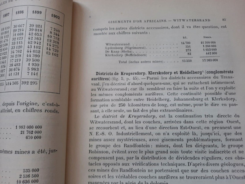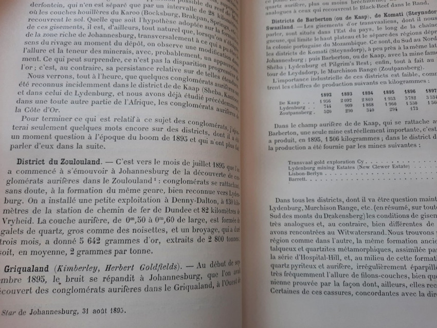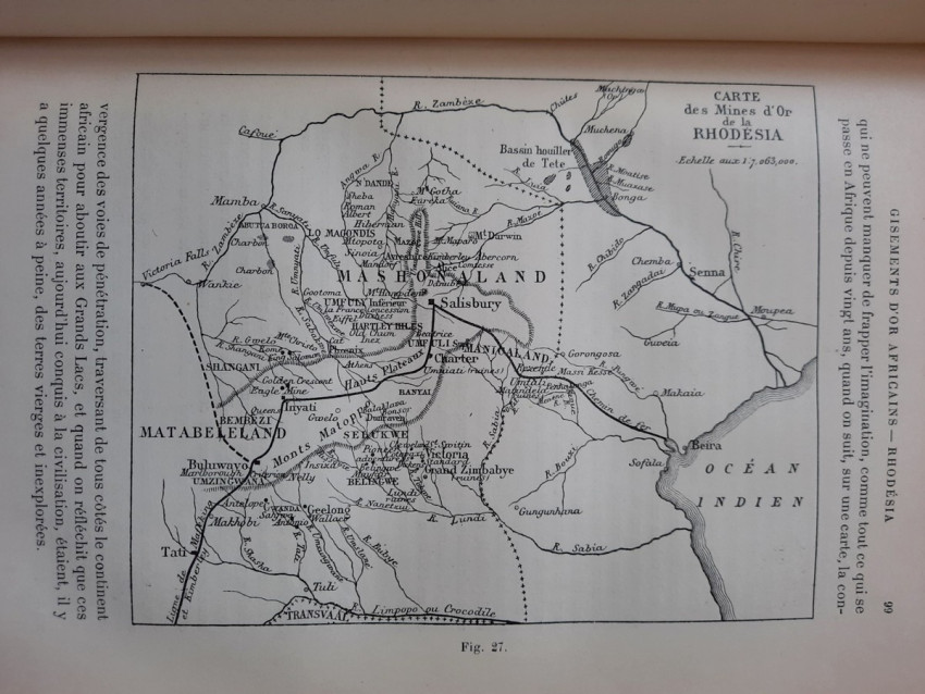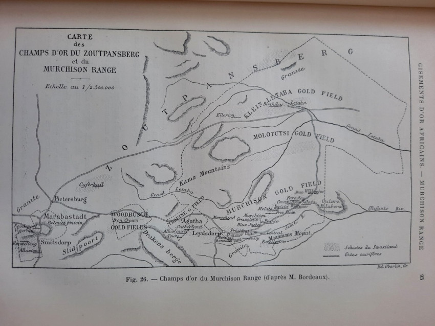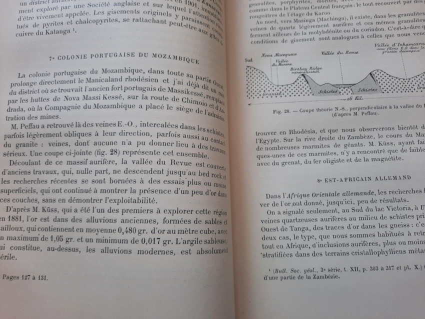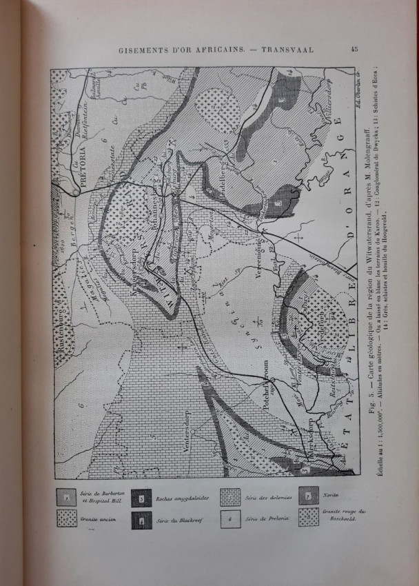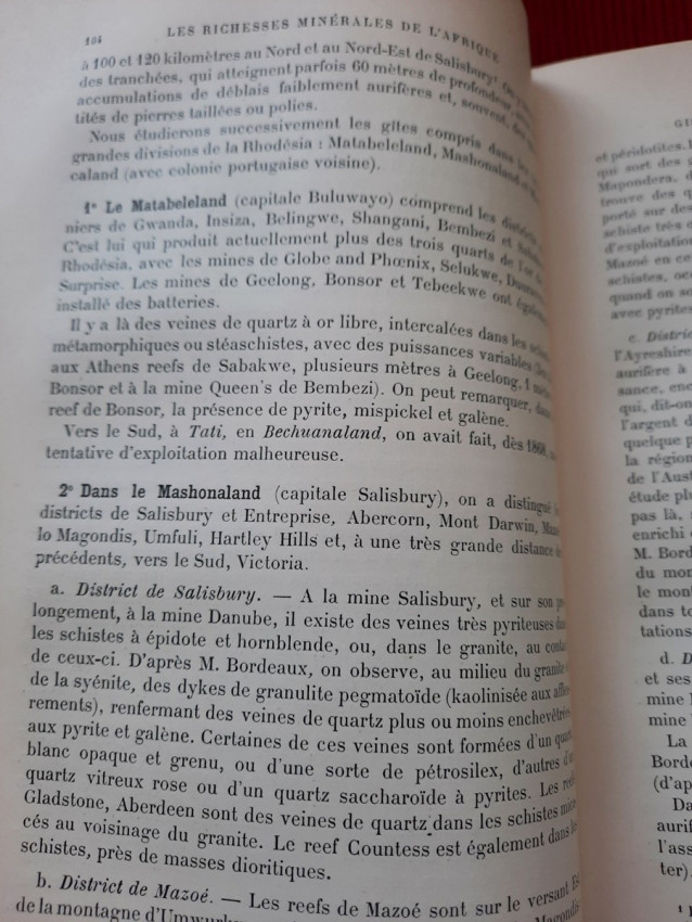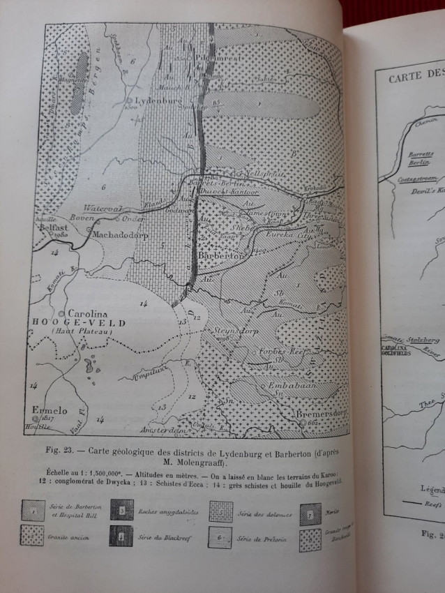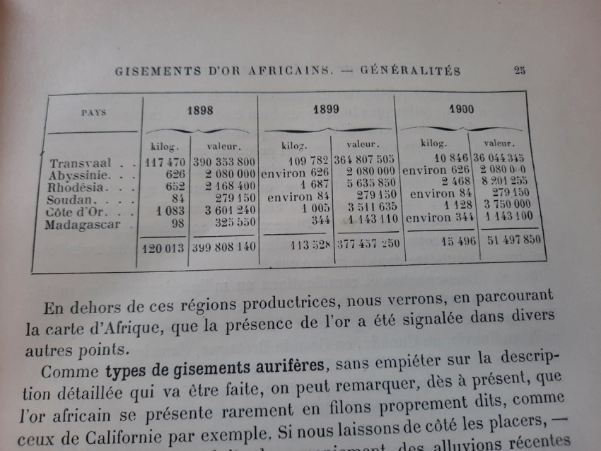 "Les Richesses Minerales De L'Afrique: L'Or, Les Metaux, Le Diamant, Les Phiosphates, Le Sel, Les Combustibles, Les Sources Thermales, Etc."; Original red cloth hardcovers; Text in French; Collation complete - Title page, (4), 416 pages; Binding is tight and firm, with some rubbing to the extremities and fading on covers and slight fraying on corners and spine ends. Pages/text block in impeccable condition, bright and clear, with slight yellowing, no foxing or any marks throughout. A clean copy in excellent condition.