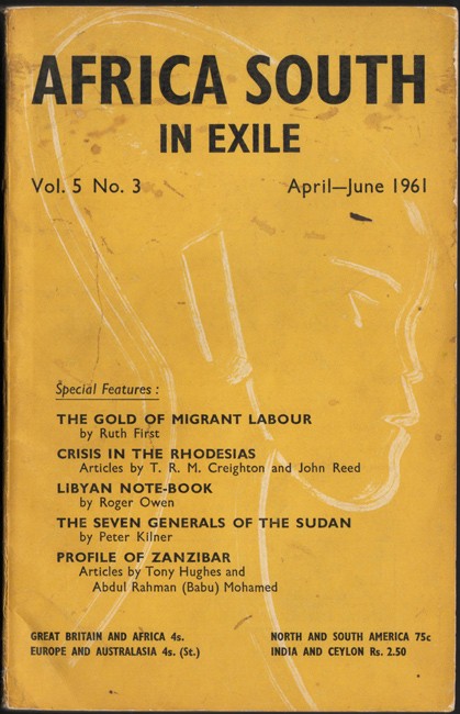 Ronald Segal, born into a wealthy Cape Town family, was a left-wing activist, author and publishing visionary. In 1956, he was only 24 when he launched Africa South - a quarterly publication that combined a critique of apartheid, substantial investigative journalism, coverage of events elsewhere in Africa and internationally - which he edited managed and distributed. After Segal's flight into exile, the journal continued for a couple of years as Africa South in Exile. Segal later founded the Penguin African Library. Africa South was non-sectarian, carrying articles by liberals, socialists, academics and journalists across a broad political spectrum; it provided thoughtful, forthright and outspoken commentary; although it is best remembered for its opposition to National Party rule in South Africa, it was strikingly alert to currents and topics beyond the country. The magazine's extraordinary range (and historical importance) is indicated by the 260 contributors to its 21 volumes, a roll-call that can only be hinted at here. South African authors (in alphabetical order) included Hilda Bernstein, Anthony Delius, Patrick Duncan, Ruth First, Helen Joseph, Nelson Mandela, Z. K. Matthews, Fatima Meer, Alan Paton, Jack Simons, Walter Sisulu and Can Themba; Segal solicited articles from African thinkers and activists including Hastings Banda, Kenneth Kaunda, Tom Mboya, Joshuah Nkomo and Julius Nyerere; the journal also carried articles by politicians and writers including Barbara Castle, G. D. H. Cole, Basil Davidson, Thomas Hodgkin, Colin Legum, Thomas Pakenham and Terence Ranger.