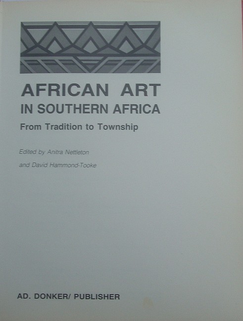 A.D.Donker, 1989, illustrated essays by Sandra Klopper, Patricia Davison, Elizabeth Ann Schneider, Marion Arnold, David Koloane and others, notes and references, 252 pages, 210 x 270mm, slight edgeware to dust-jacket, otherwise condition: very good.