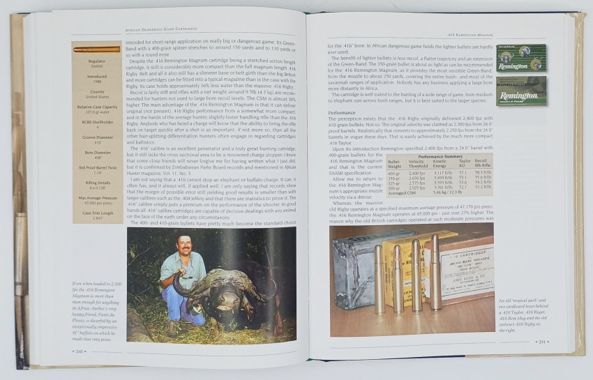 From Chuck Hawks review of African Dangerous Game Cartridge, (https://chuckhawks.com/african_dangerous_game_cartridges_review.htm), ‘Pierre van der Walt is a renowned South African professional hunter, author and (according to the book's dust jacket) the widest published gun writer in Africa. He is also an advanced level firearms instructor and the founder of South Africa's national gun and hunting show, the Aim & Wild Expo. He has been awarded more honorary life memberships by southern African firearm, hunting and gun rights organizations than any other South African in history. Pierre is known as an avid rifle and cartridge collector, reloader, wildcatter and ballistic experimenter. The point being, he is well qualified to write a definitive reference about contemporary African dangerous game cartridges and this book covers virtually all of them, old and new, that are in use today.