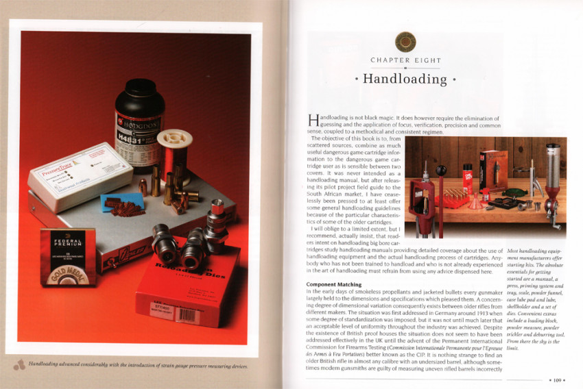 Its focus is narrow: dangerous game cartridges, rifles, and the necessary accessories. While some may consider this too narrow a focus, the depth of detail makes it extremely valuable. It covers every sporting caliber from 9.3x62 to a .600 Nitro Express, for a total of 48 cartridges altogether. Written by a leading African professional, this book sets a standard for the genre, and in these 480 pages you will find a depth of knowledge and information that can be found nowhere else.