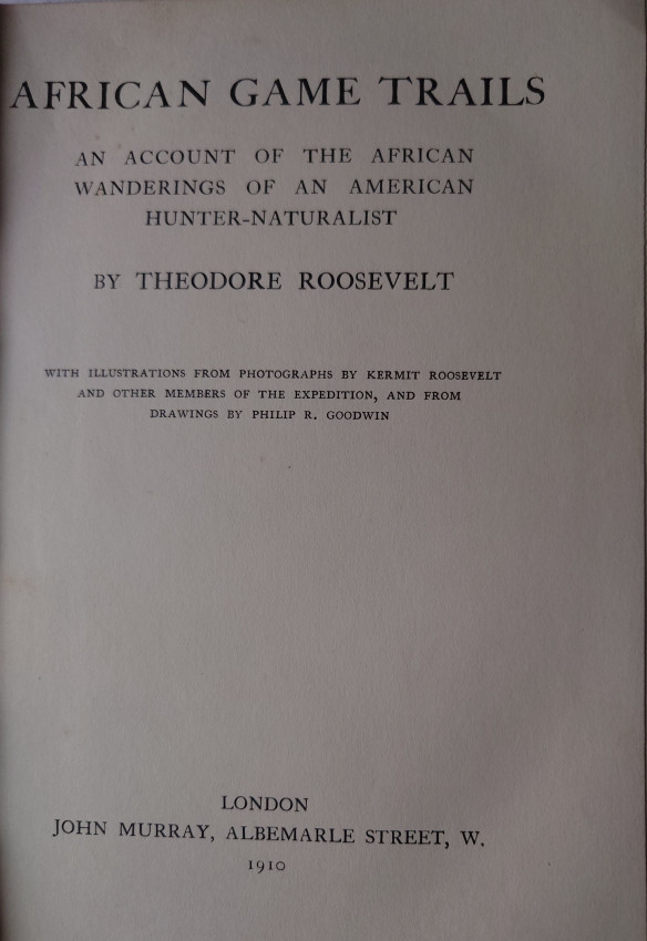 Roosevelt's highly interesting account of his travels through British East Africa, the Congo, and the Sudan in pursuit of all manner of big game. The narrative is gripping and the scientific content of enduring significance. Czech p. 238.