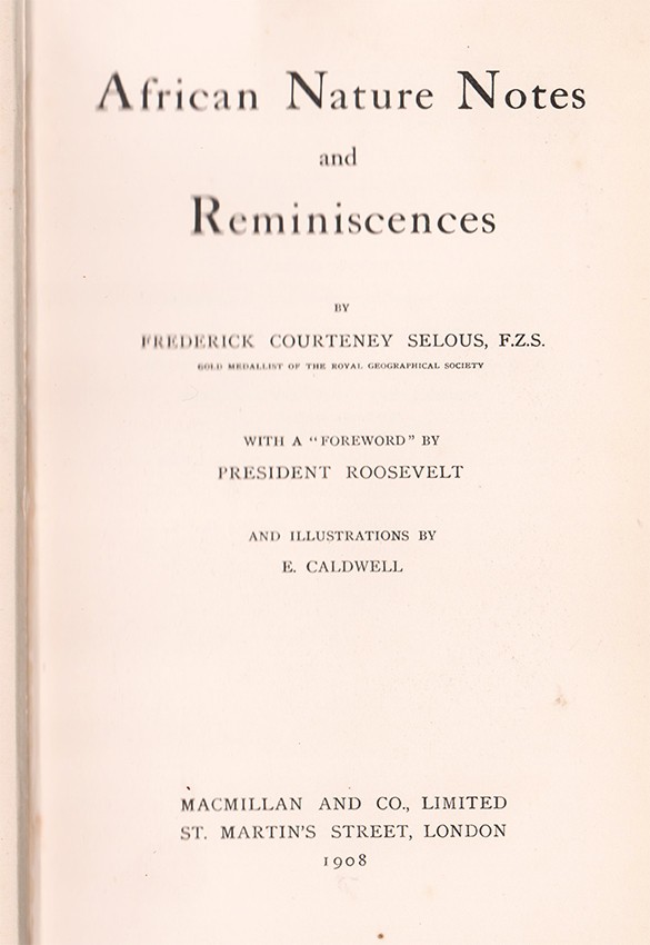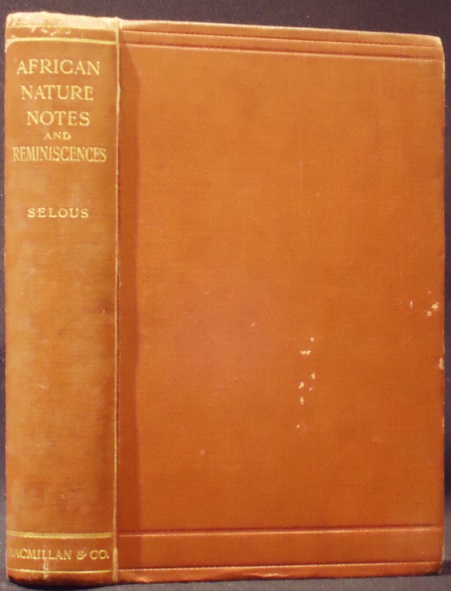 Czech (Dr Kenneth) An Annotated Bibliography of African Big Game Hunting Books, 1785 to 1999 page 252: 'A wide-ranging work that discusses everything from the colouration of African big game to the extinction of some species in South Africa. There are plenty of big-game hunting episodes, which Selous uses to accent his chapters on Cape buffalo, black rhinoceros, and lion, among others. Written at a time when there was a noticeable depletion of the great game herds, he becomes almost lyrical in his longing for the old days: "but no man will ever again sit by a camp fire near one of the little rivers....eating prime pieces of fat elephant's heart, roasted on a forked stick, nor watch the great white rhinoceroses coming to drink just before dark nor lie and listen to herd after herd of elephants drinking and bathing in the river near the camp"'.