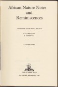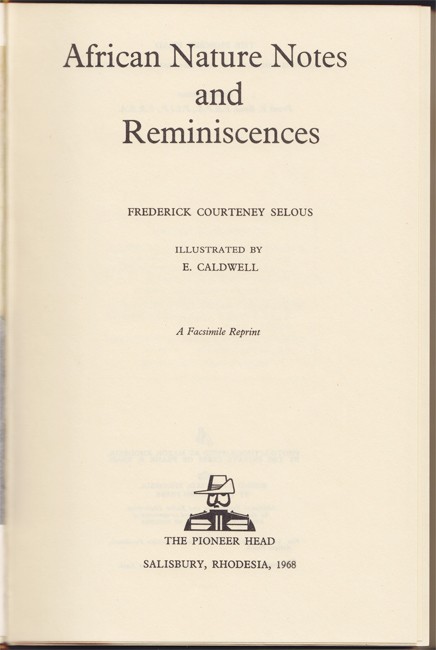 De Luxe Edition: 356 pages, colour frontispiece portrait of the author, 13 plates, facsimile of an autograph letter by Selous as endpapers, quarter green leather with a orange title label on the spine, grey cloth sides, top edge gilt, contained in a grey cloth slip case, a very good copy.
