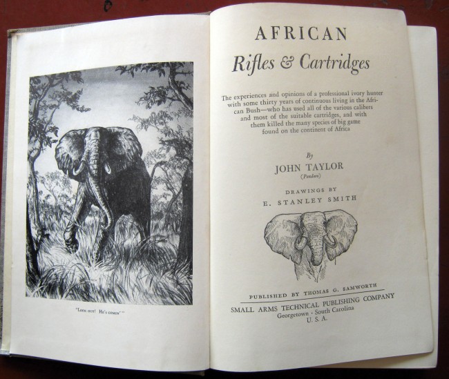 The experiences and opinions of a professional ivory hunter. ix, 431p. Frontispiece, ills. Beige cloth with gilt lettering. Previous owner's name on ffep. Spine is slightly grubby. Covers all aspects of African rifles and cartridges.