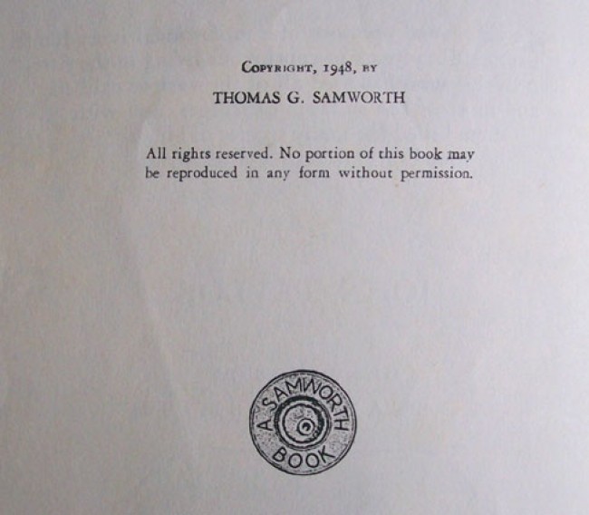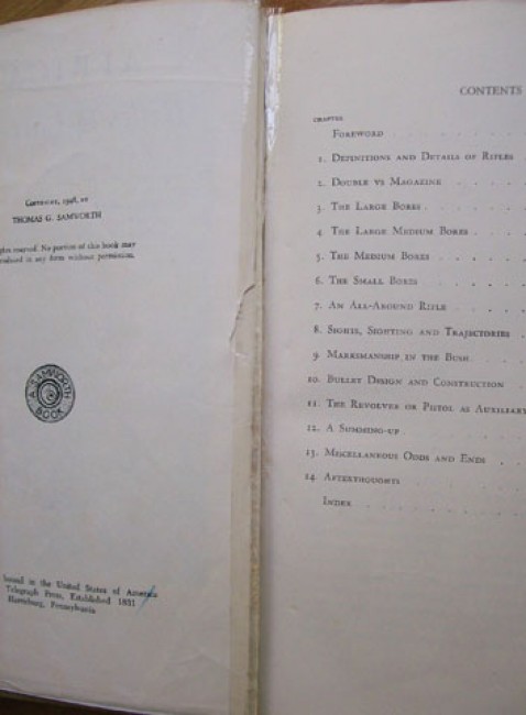 Original light brown buckram boards with gilt tilting on the spine and the upper board. 12 prelims, 431 pages, profusely illustrated in black and white, followed by 9 pages advertising Samworth books on firearms. CONDITION DETAILS: The frontis and title page came loose and were replaced with sticky tape. There is a closed tear in the gutter of the title page. The corners of the binding are bumped and the titling is not as clear and bright as it should be. Minor browning to end papers and a few other signs of use.