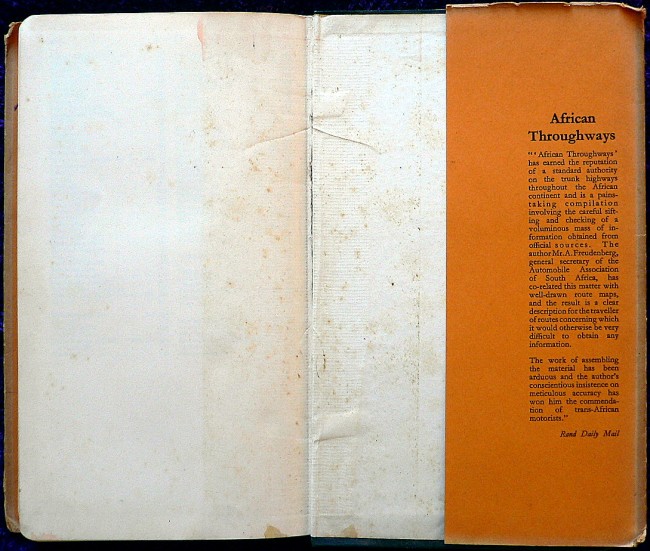 \'African Throughways\' has earned the reputation of a standard authority on the trunk highways throughout the African continent and is a painstaking compilation involving the careful sifting and checking of a voluminous mass of information obtained from official sources.