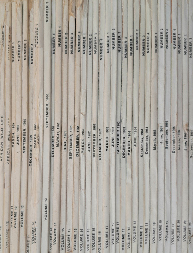 Lot of 69 African Wild Life magazines from 1947 to 1966. Soft covers, square back binding, on average 88 pages each. Magazines in good condition.