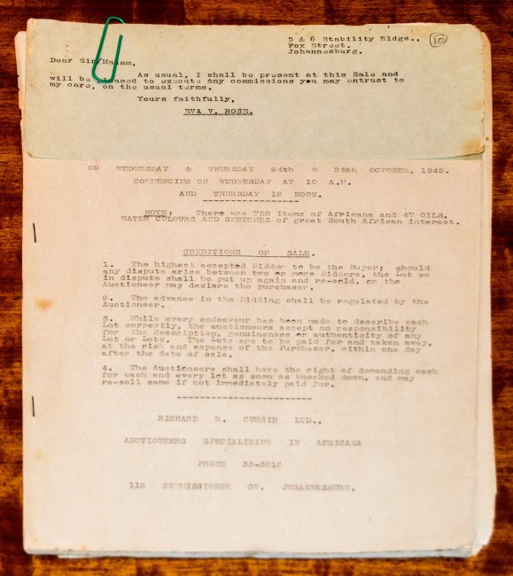 (2) 24 and 25 October 1945. The same auctioneer and the same Eva V Rose. This time 758 items of Africana and 47 works of art. There is no single main seller. i + 39 pp (Africana) + 8 pp (paintings) + 12 pp (non-Africana items).