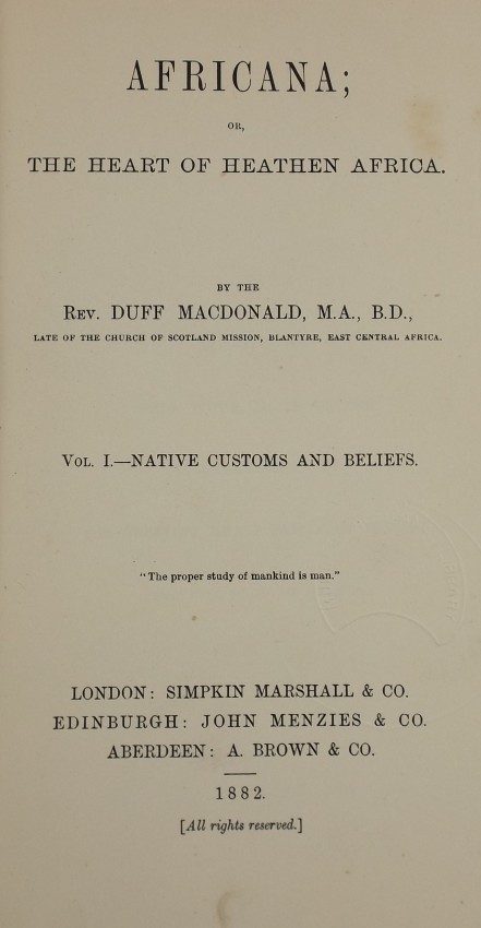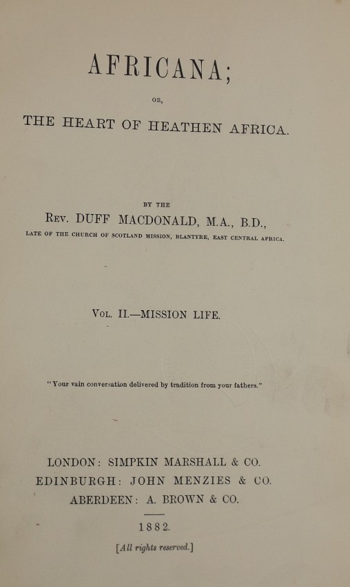 leader, Rev. Duff Macdonald, the Blantyre Mission ruled over
