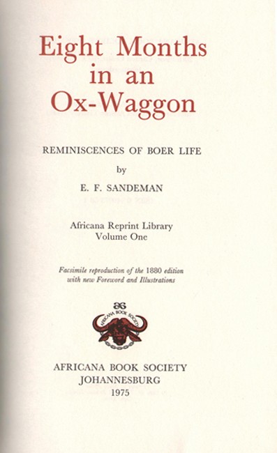 1. Sandeman (E.F.) EIGHT MONTHS IN AN OX-WAGGON