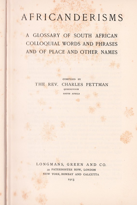 East London Daily Dispatch July 24th, 1913: “ What is the origin of the name 'Aliwal Shoal'? What is a 'request farm' or an 'inkruip plaats'? Why is the name 'Seventy-Four' given to a certain fish? What is the derivation of 'Smouse?' And what is wrong with the spelling 'Sluit'? The answers to these and similar questions will be found in Mr. Pettman's book, which is strongly recommended to all who take an interest in things South Africa.”