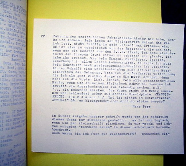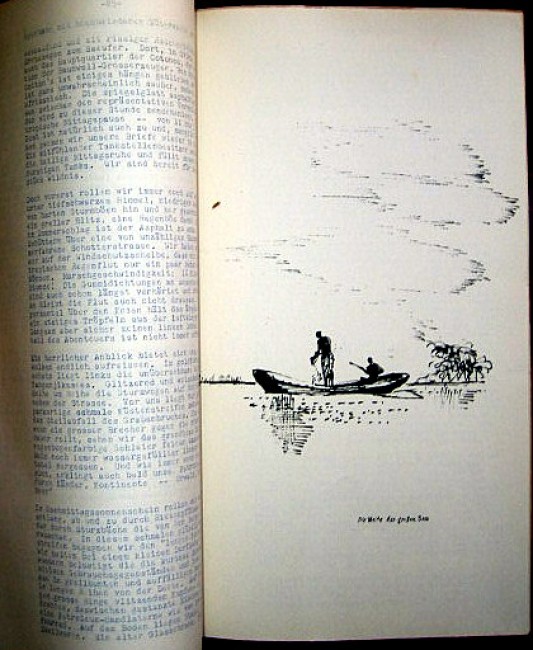 105pp. Softcover. Staplebound with overlaying spine-tape. Original Blue Roneo Typescript Copy with B/W Line Illustrations. Text in original German.