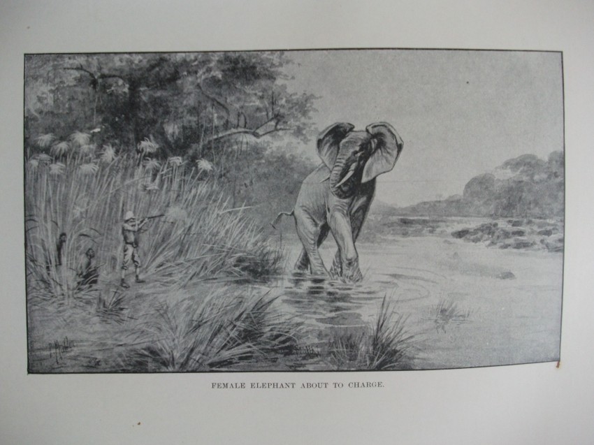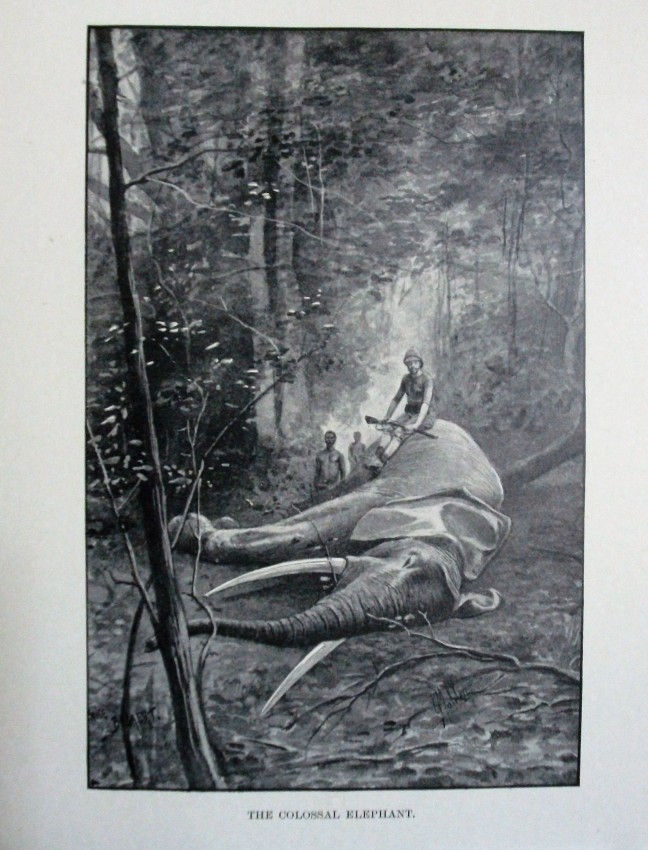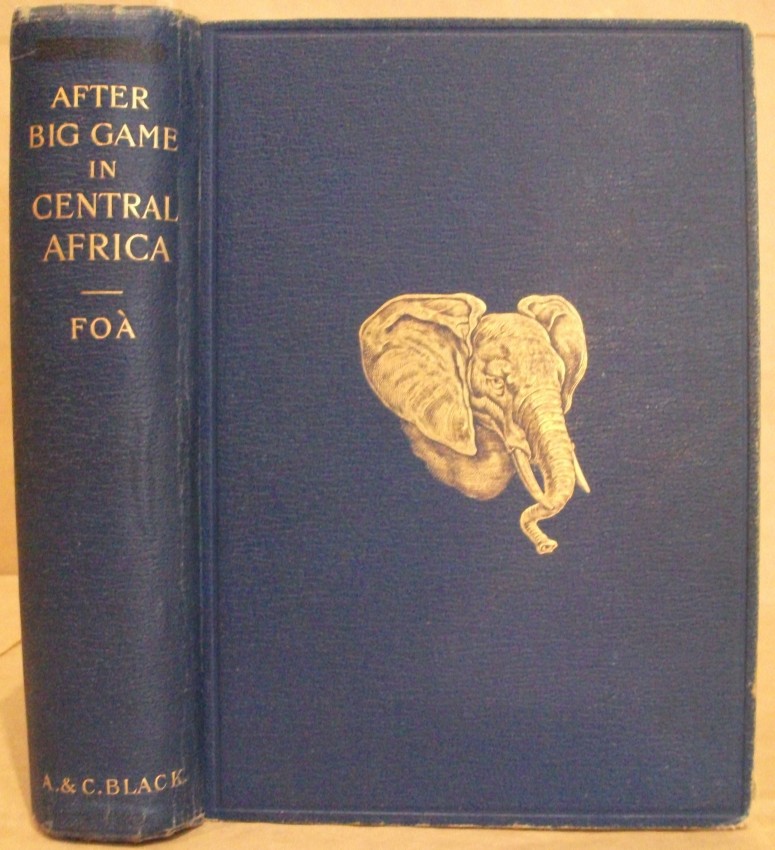 Blue cloth-boards with a gilt elephant illustration to the upper board, gilt lettering to the spine and a gilt top page edge. Plain black endpapers, xvi + 330 pp of text, a table, an appendix and an index. There are 36 illustrations in the text + a frontispiece portrait of the author and 29 other inserted plates, including a 2-colour map + 10 pp of publisher's announcements.