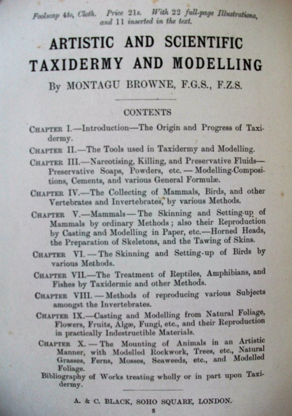 The books in the publisher's announcement include an introduction to the study of live and extinct animals and Artistic and Scientific Taxidermy and Modelling.