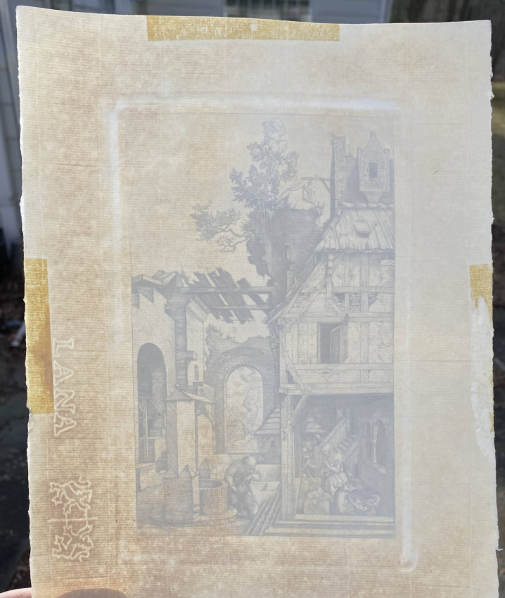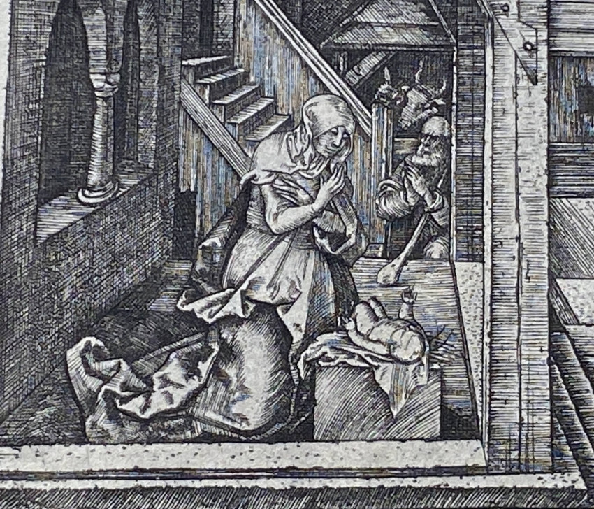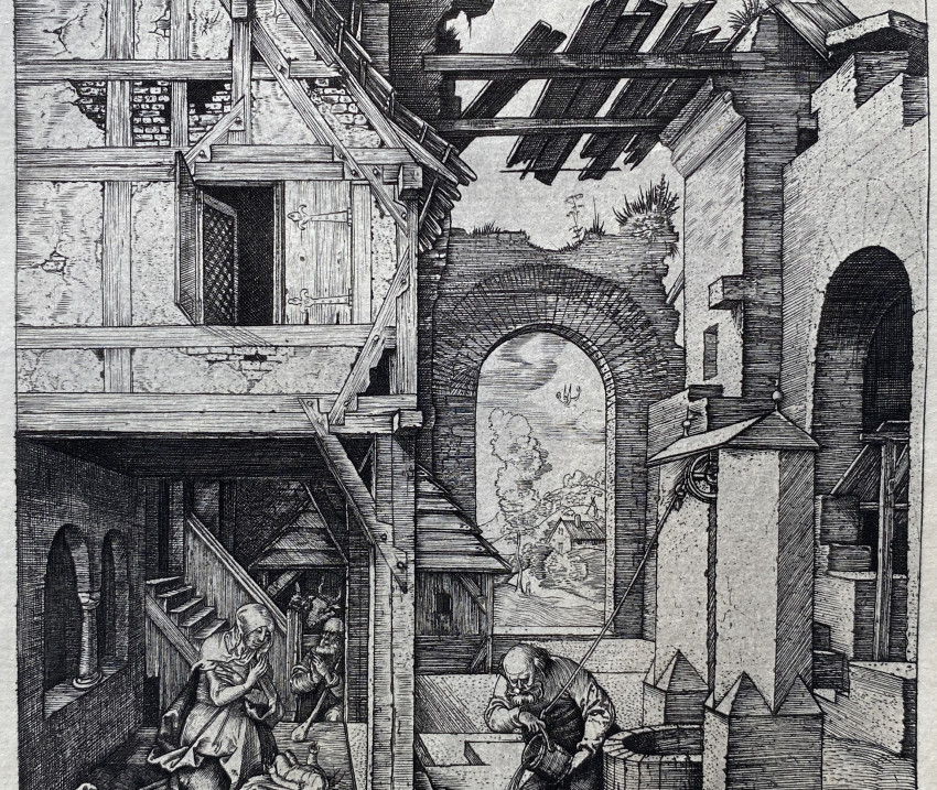 After Albrecht DURER (1471 - 1528). - [Charles AMAND-DURAND (French, 1831-1905)]. [The Nativity or Christmas Day], copper plate engraving on watermarked laid paper (watermarked ‘Lana’) after the original by Durer, by master engraver Amand-Durand. [Undated]. Signed in the plate, upper center. Excellent. Image size 7 3/16 x 4 5/8 inches. Sheet size 11 1/4 x 8 inches. Condition: light old toning, tape residue to verso [ see images], some areas of margin with paper thinned by tape removal [see images]. A tour-de-force of the engraver's art.
