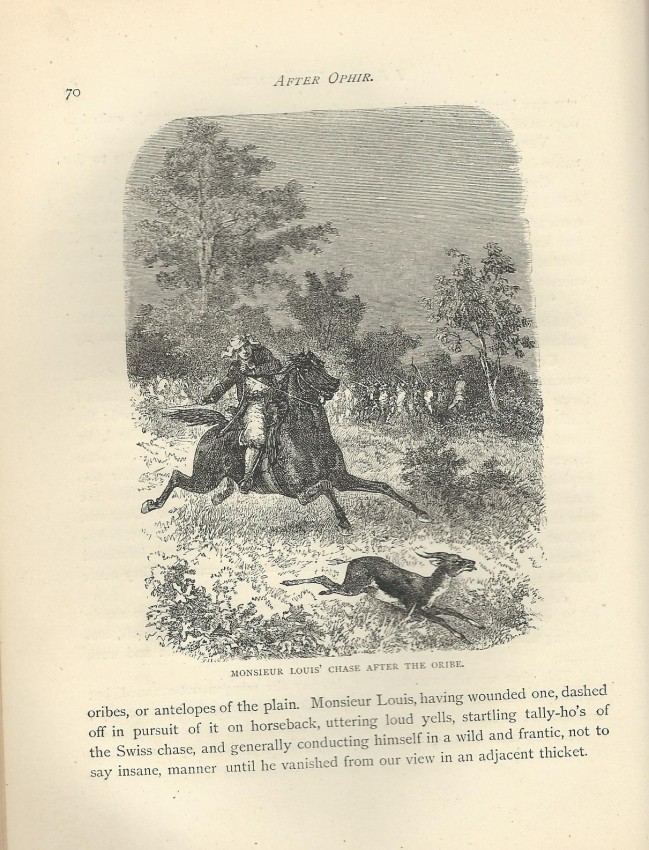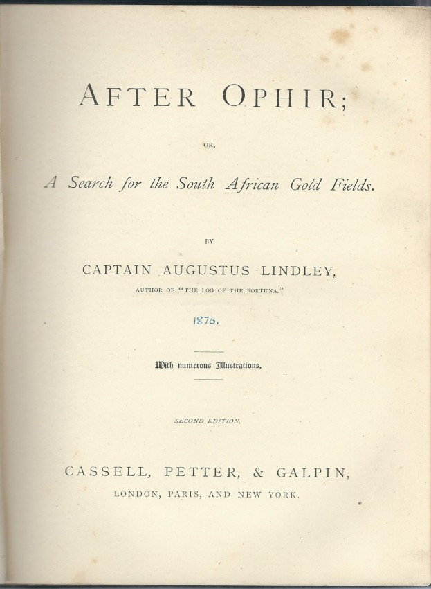The author and his fellow gold hunters visited Zululand and Matabeleland, and had an interview with a young Cetywayo (a vignette drawing appears at p. 140). Also an account of 200 Australian gold-diggers arriving at Durban, the bushmen, Kaffirs, hunting 'gators, buffalo, hippos and elephants, and more. Note: 1.5 kg. Also accounts of hunting leopard, lion, elephant, rhino and other big game.