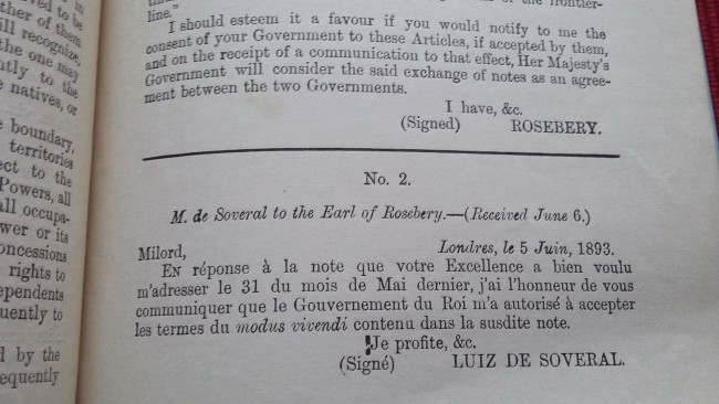 Harrison and Sons, St. Martin's Lane, printers in ordinary to Her Majesty; British Parliamentary Paper Treaty Series No 10. C 7032.; Blue paper wrappers; Collation complete - Title page, blank page, 4 pages; British Parliamentary Paper Treaty Series No 10. C 7032.; A clean copy. Ex-libris stamp to the front cover.