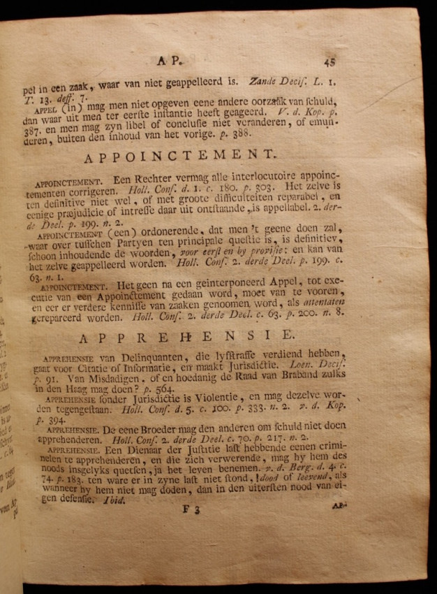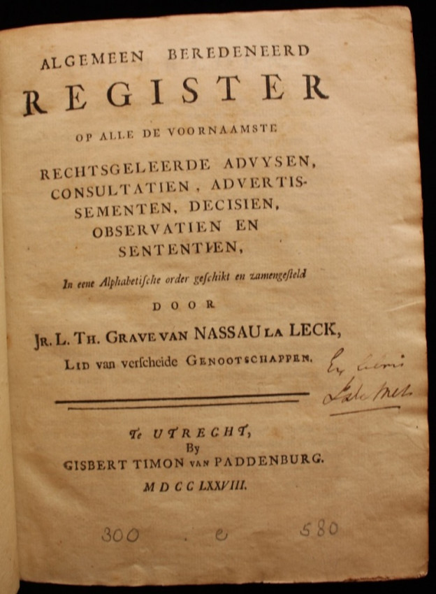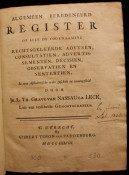 "Op alle de voornaamste rechtsgeleerde Advysen, Consultatien, Advertisementen, Decisien, Observatien en Sententien, in eene Alphabetische order geschikt en zamengestelt."
