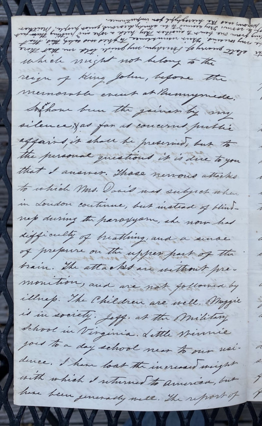 See Wellcome Colllection MS.8511 - a group of letters including one, dated 28 March 1874, from Jefferson Davis to Dr. Davis