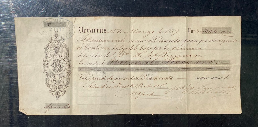 The ship calls in briefly at Mazatlan (‘Matzitlan’) where they have a yellow fever outbreak, then on: ‘Sept. 23. 83 finds us at the port of San Blas 2000 miles from San Francisco’, notes on the fruit growing in the region, description of the journey, how to make tortillas (‘torteers’), the perceived dangers, on to Tepic. Notes on Tepic and the way of life, boards the ‘hack’ or ‘diligencias’ for the journey to Guadalajara (the receipt for the journey is included), a description of a local bullfight, arriving in Guadalajara and meeting up with his brother Hiram (a dentist who was working in Mexico, his business card included), description of the sites of Guadalajara, a local funeral, ‘invited by the Governor to a Spanish bull fight which was a great show’. ‘Brother & I took a seventeen days journey out into the interior and We hired two men Body Guards and four horses', to Chapala and Lago di Chapala (‘Lake Chapala’), then on to the 125,000 acre ‘Garacha farm’ owned by ‘an old batch[elor] & two old maids by the name of Moranos’. The brothers were treated ‘to the best their house afforded. The three people are said to be worth two million dollars each’. Gives details of the economics of the ranch, as well as the number of families employed, etc. Back to Guadalajara, on to Largos. Then by train to Mexico City, via Leon, and ‘Gaudalupa’. Then on to Veracruz (‘Vera-Cruze’) via Oriziba (‘Orazaba’). Arrived in Veracruz on the 9th November.