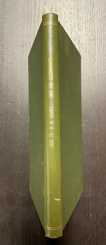 Green cloth binding with gilt spine lettering, incorrectly dated 1833. Approx. 8 3/4 inches; 23 cm.