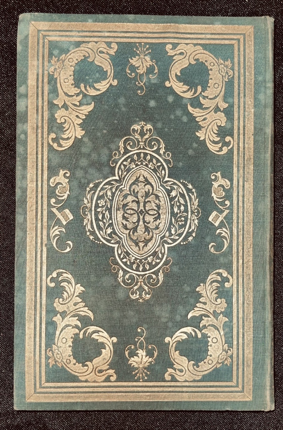 Green cloth with gilt decorated covers, soiled and faded in spots but still rather striking. See images.