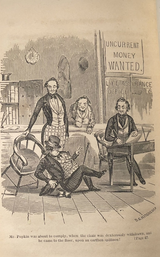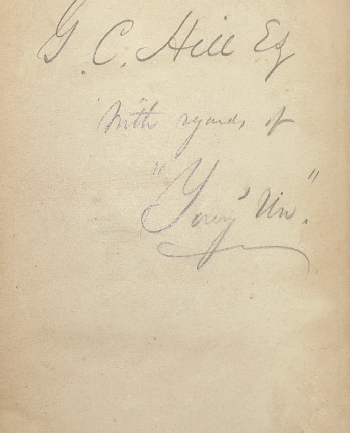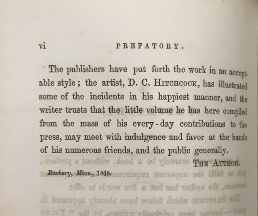 Gleanings from the Portfolio of the "Young'Un." Illustrated by Hitchcock. Boston: R.B. Fitts, 1849. Third edition. Inscription on front blank may or may not be by the author--“G. C. Hill Esq. / With regards of / “Young ‘Un." [Wright I, 462]