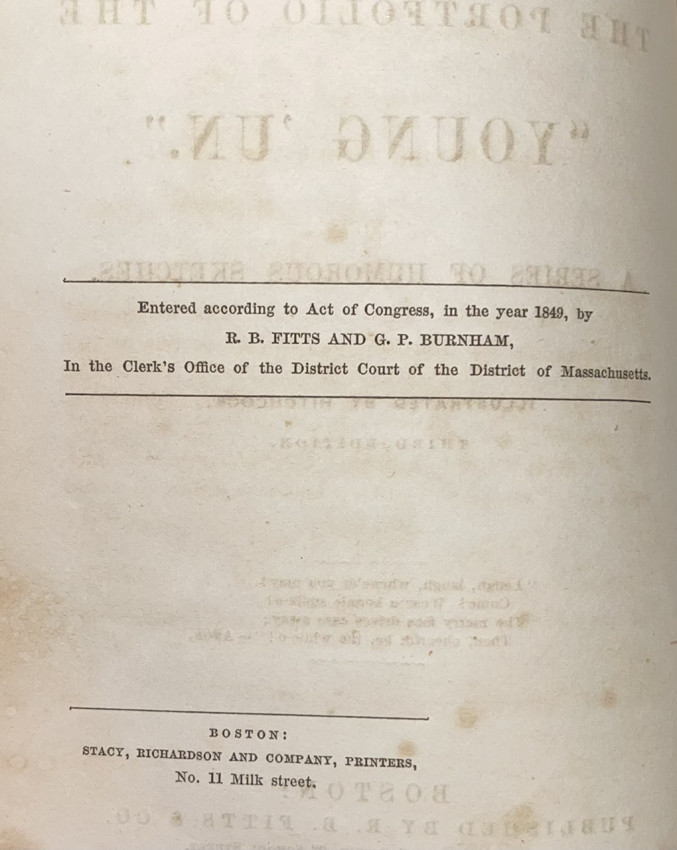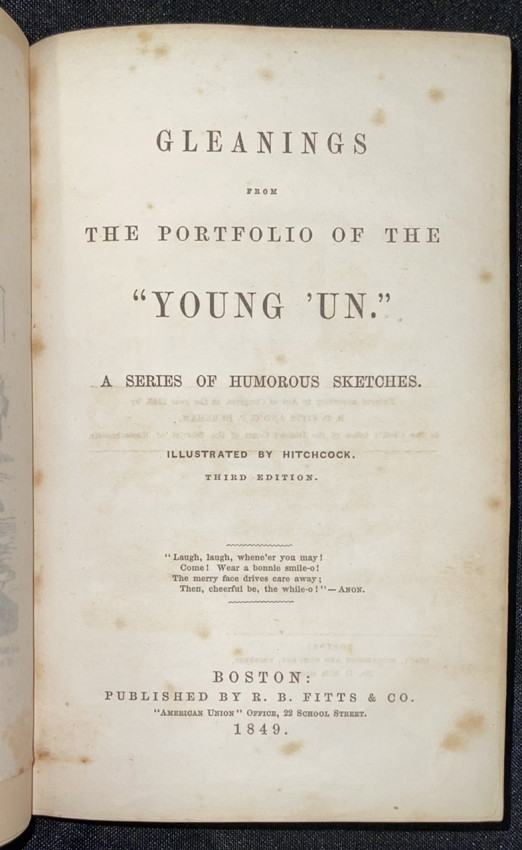 [Americana]. [Binding]. Gleanings from the Portfolio of the "Young 'Un." Illustrated by Hitchcock. Boston: R.B. Fitts, 1849. 3rd edition.