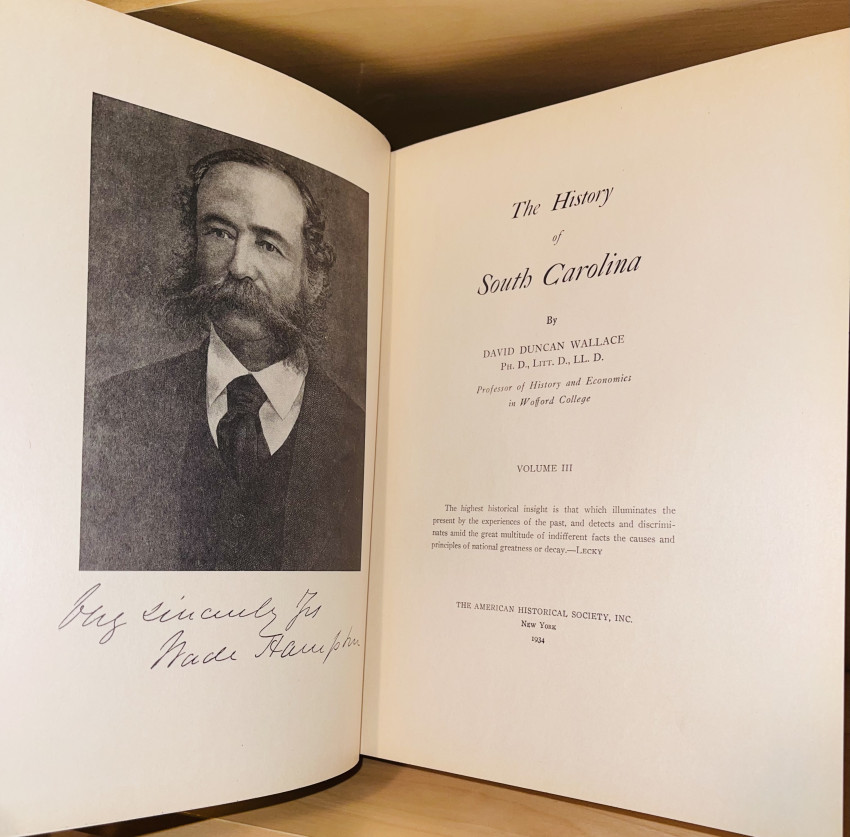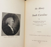 Wallace, David Duncan, 1874-1951 ;The History of South Carolina. New York, American historical society, 1934. Three volumes (a biography volume was issued later and is not included with this offering.) text is clean. Illustrations throughout. Grey cloth, spines faded. Light wear and staining to one cover.