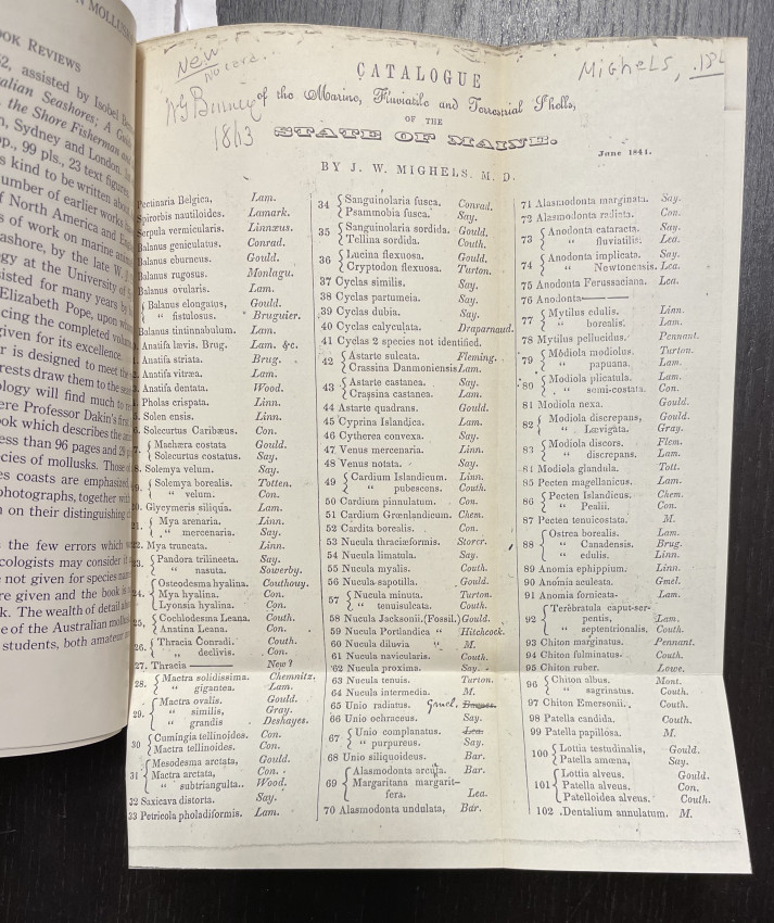- [Photocopy] Mighels, J. W. Catalogue of the Marine, Terrestrial and Fluviatile Shells of Maine. Portland, double sheet published by the author. (2) 1842.