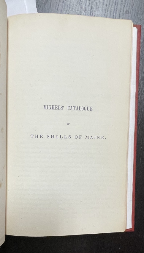 - Mighels , J. W. MIGHELS' CATALOGUE OF THE SHELLS OF MAINE; Catalogue of the Marine, Fluviatile and Terrestrial Shells of the State of Maine and Adjacent Ocean. [Extracted from the Boston Journal of Natural History, for April,1843]. 39p. This is the separately published issue repaged 1-39. (OCLC 4 copies.)