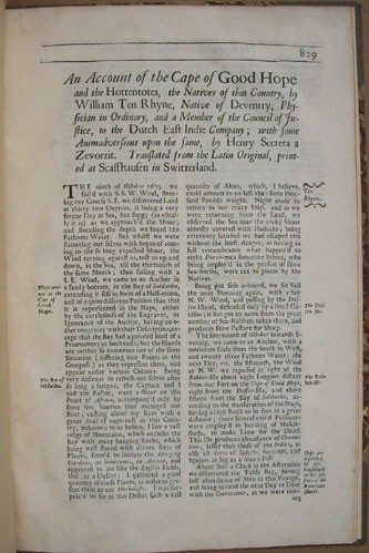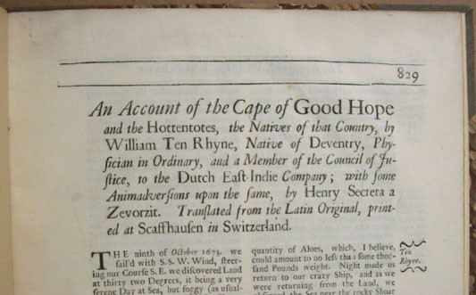 Here the pagination begins at 829 and ends at page 846, of which 17 pages complete the Ten Rhyne chapter. (The last page begins an entry by Captain Bolland.)