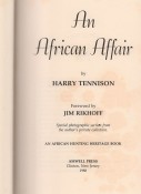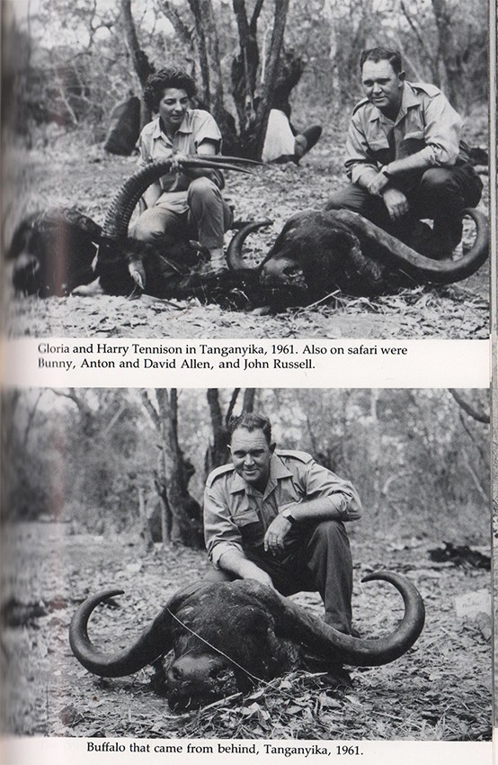Czech (Kenneth)An Annotated Bibliography of Big Game Hunting Books 1785 - 1999 page 281: Tennison, a big game hunter and conservationist describes his efforts after elephant, lion, buffalo, leopard kudu, nyala and other game in Tanzania, Kenya and other locales.