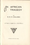 \'Rolfes Reginald Raymond Dhlomo (1906-1971) was born near Pietermaritzburg and was the brother of renowned KwaZulu-Natal poet H.I.E. Dhlomo. He worked as a mine clerk in Johannesburg and as a freelance journalist becoming, in 1932, assistant editor of the Bantu World and, in 1943, editor of Ilanga lase Natal. Most of his creative work is in Zulu and consists of historical novels of nineteenth-century Zulu leaders: U-Dingane (1936), U-Shaka (1937), U-Mpande (1938), U-Cetshwayo (1952) and UDinizulu (1968). He wrote a novella An African Tragedy (1928), the first piece of English prose fiction by a black South African to appear in book form and presenting a sombre picture of life in the black urban slums. Under several pseudonyms including \'Rollie Reggie\', \'The Randite\' and \'Pessimist\', he regularly sketched moral tales of life in the mining compounds for Stephen Black\'s magazine The Sjambok (1929-1931) - a selection is to be found in English in Africa (March 1975). In 1946 he returned to the conflict between rural and city ways in the Zulu-language Indlela Yabani (\'The Evil One\'), a narrative depicting the dilemmas of an African in the locations of Johannesburg.\' (From the Companion to South African Literature - Adey, Beeton and Chapman, 1986).