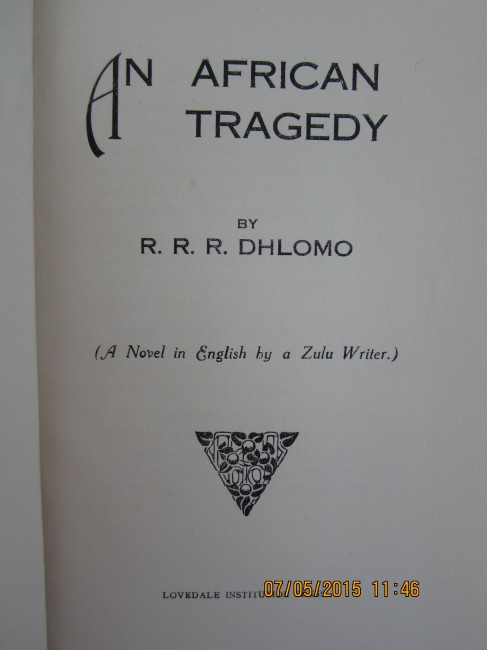 8+40 pages: the first novel in English by a Zulu writer, a violent tale of life in black slums with redemptive Christian overtones; original thin card wraps, very good.