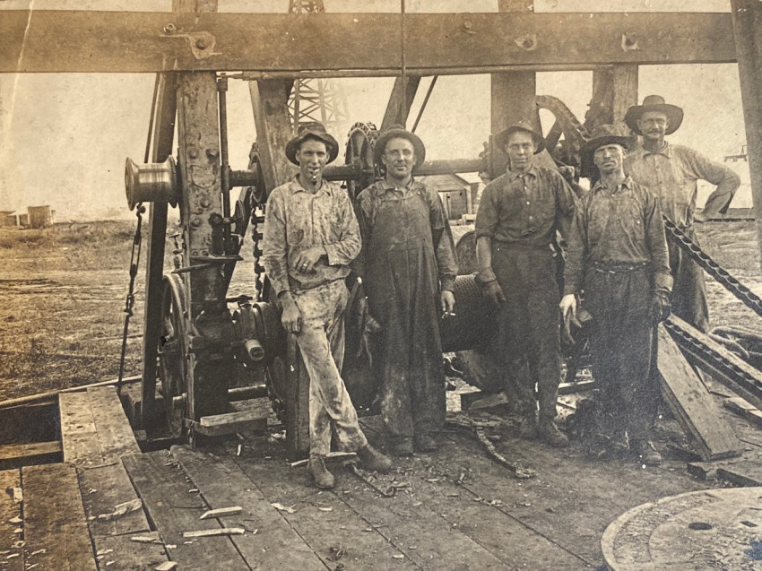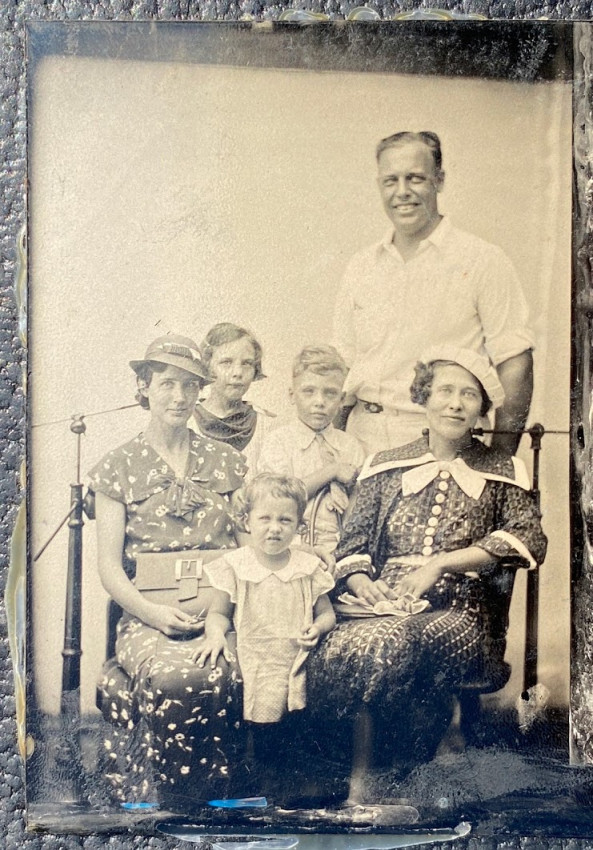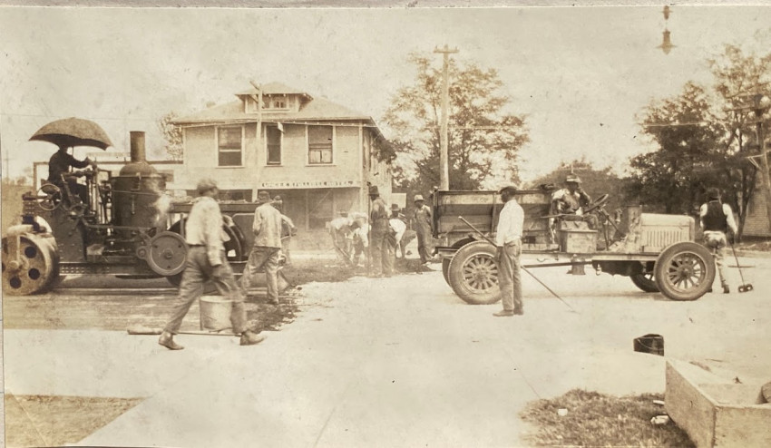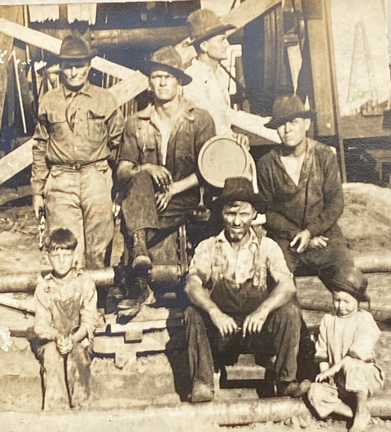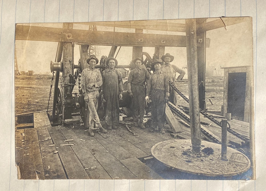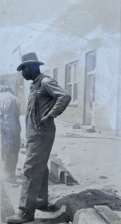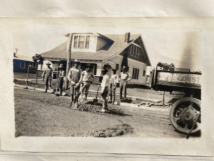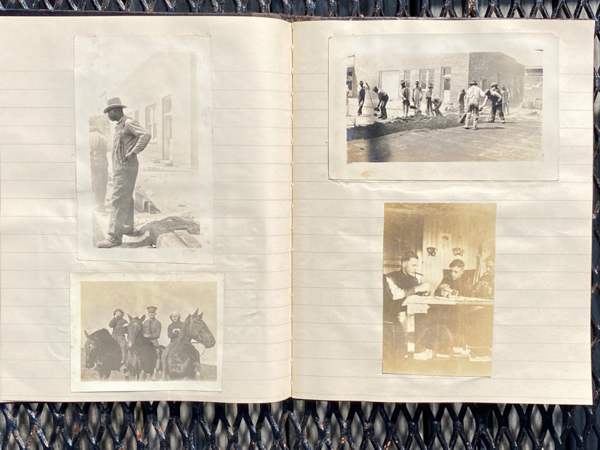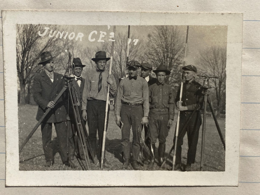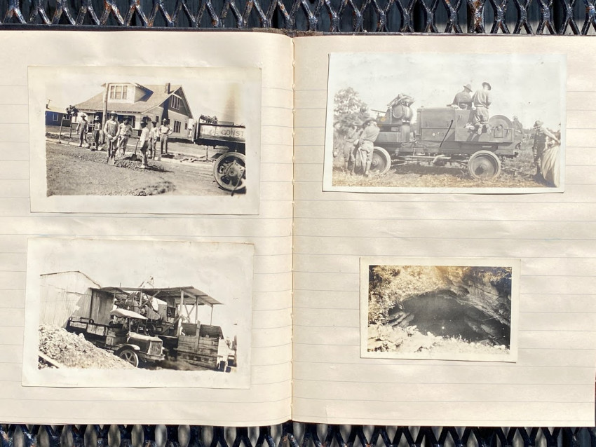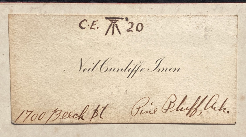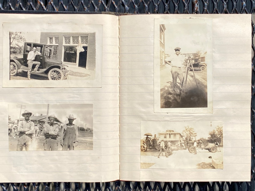 An album apparently compiled by Civil Engineer Neil Imon, of Pine Bluff, Arkansas, including Imon's business card, and images of surveying, drilling and road construction. [Arkansas: undated but 1920s?]. Octavo (8 1/4 x 6 1/2in; 210 x 165mm). 53 mounted photographs (3 3/8 x 5 3/8in; 85 x 136mm., and smaller) on 17 leaves. Original cloth, a group-portrait tintype mounted on the upper cover. Provenance: Neil Cunliffe Imon (business card mounted on front pastedown).