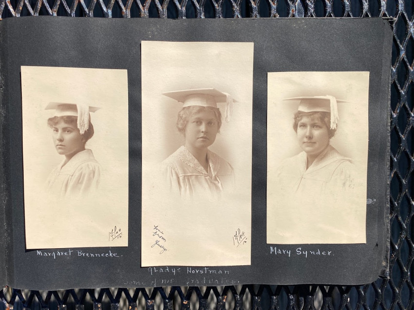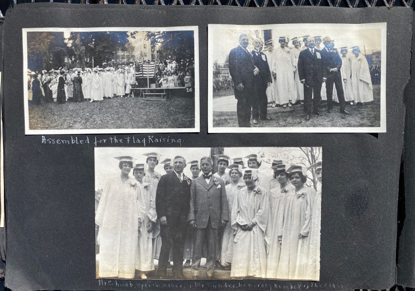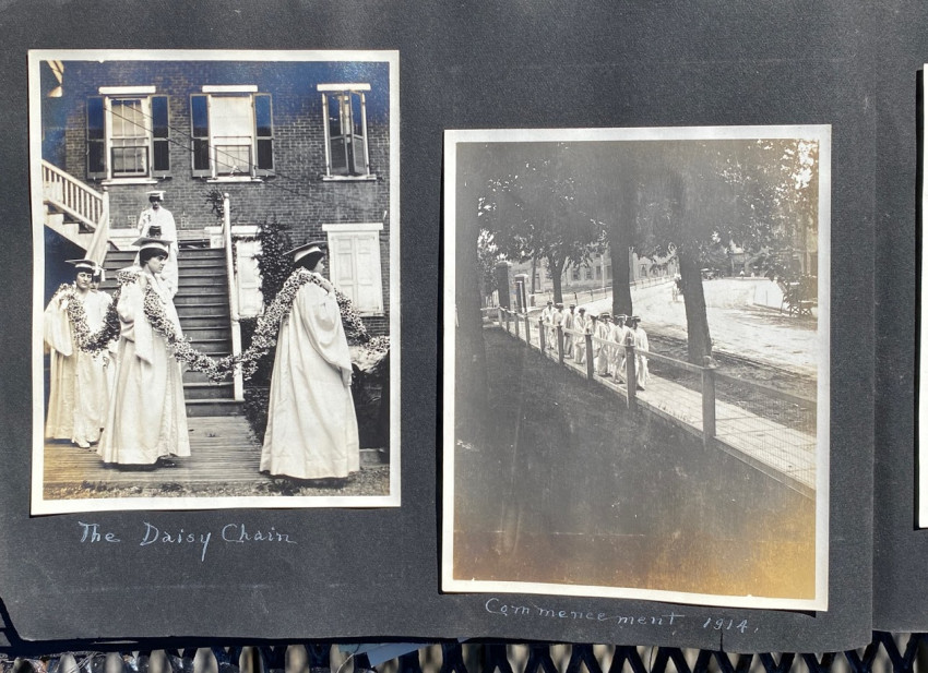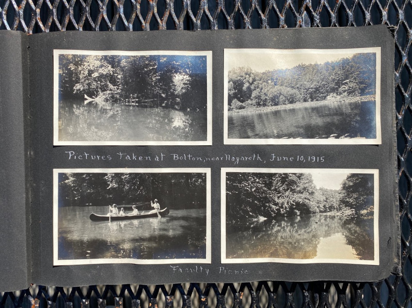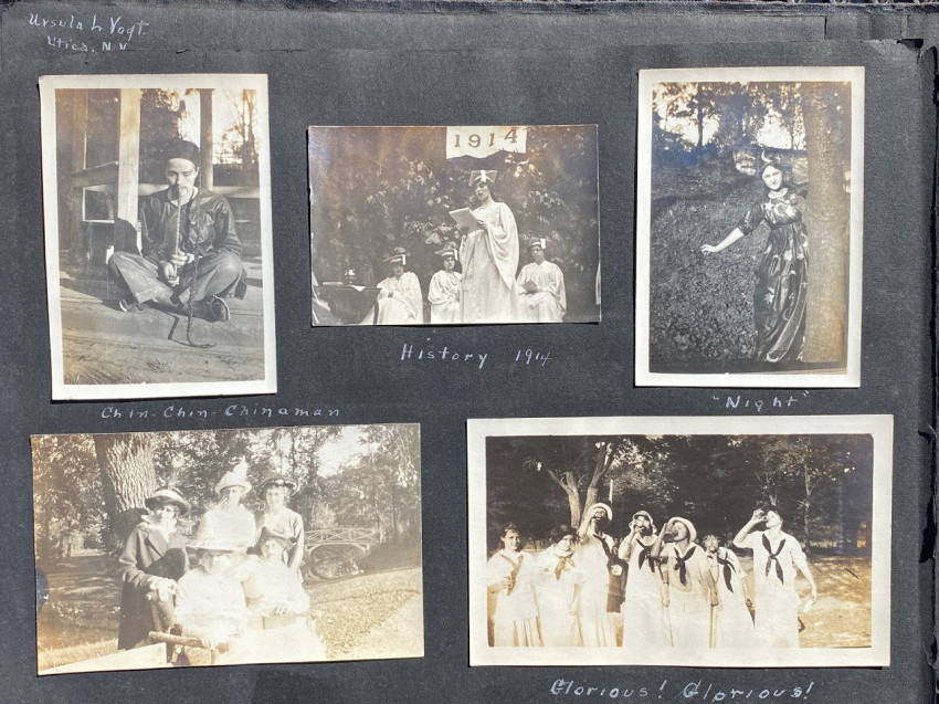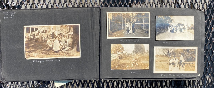 The Moravian Seminary and College for Women was created in 1913 (but traces its roots back to the Bethlehem Female Seminary founded in 1742). The present album, therefore, represents the life of one of the very first graduating classes from the newly re-launched college. In addition to images of her classmates, Ursula also records her social life both in and out the college shere, and also includes a selection of images taken by friends(?) who had been able to travel to Europe, North Africa and the Middle East (returning via Cuba) and also the Rockies.