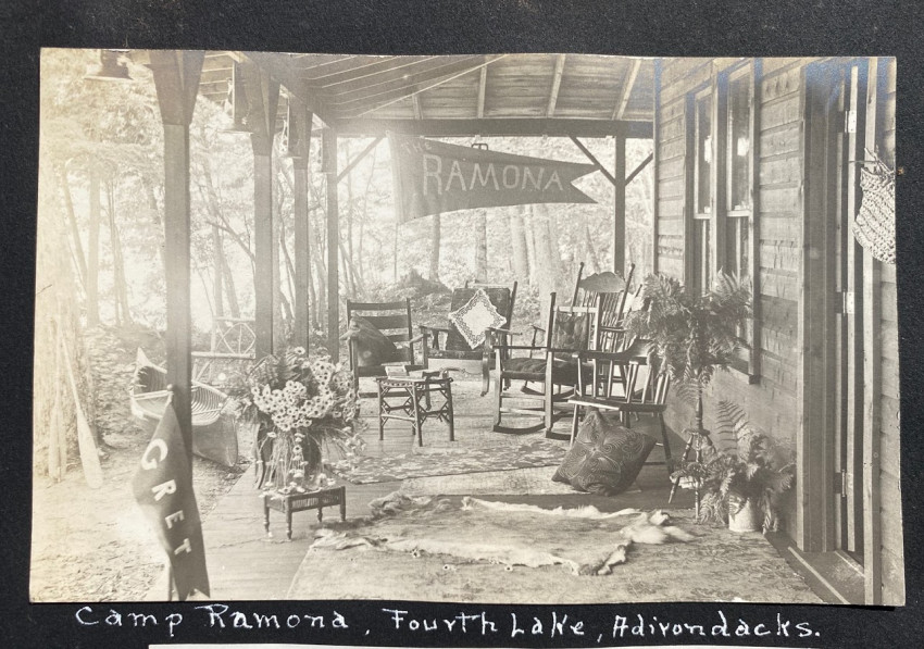 An album compiled by Ursula L. Vogt, chronicling life at the Moravian Seminary and College for Women, with some related outside locations, including Camp Ramona in the Adirondacks, and photos by a Mary Snyder on a European / Mediterranean trip, and a small group in the Rockies by a Margaret Brenecke. [Bethlehem, Pennsylvania, and elsewhere:1910-1915]. Oblong quarto (7 x 10in; 178 x 254mm). c. 350 mounted photographs (4 5/8 x 6 5/8in; 118 x 168mm, and smaller), recto and verso of 45 black thick paper leaves, most with captions, many with dates and identifying text, including a small group of formal posed images by a professional photographer, with his blindstam 'Flickinger of Bethelehem, Pa.' (A few voids where photos have been removed). Original black leather-grained cloth (extremities worn, stitching broken, a few leaves detached). Provenance: Ursula L. Vogt (inscription on front pastedown, dated 'Jan. 1. 1915'.